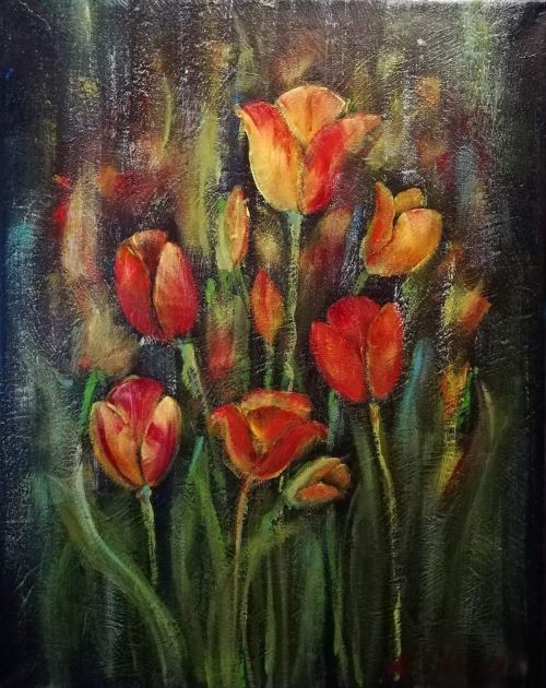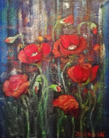”Ved flodens spejl”, olie på lærred 50*60, 2025